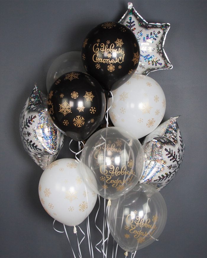 Главная страница » Магазин » Шары по событиям » На Новый Год » С Новым Годом! (золотые снежинки)